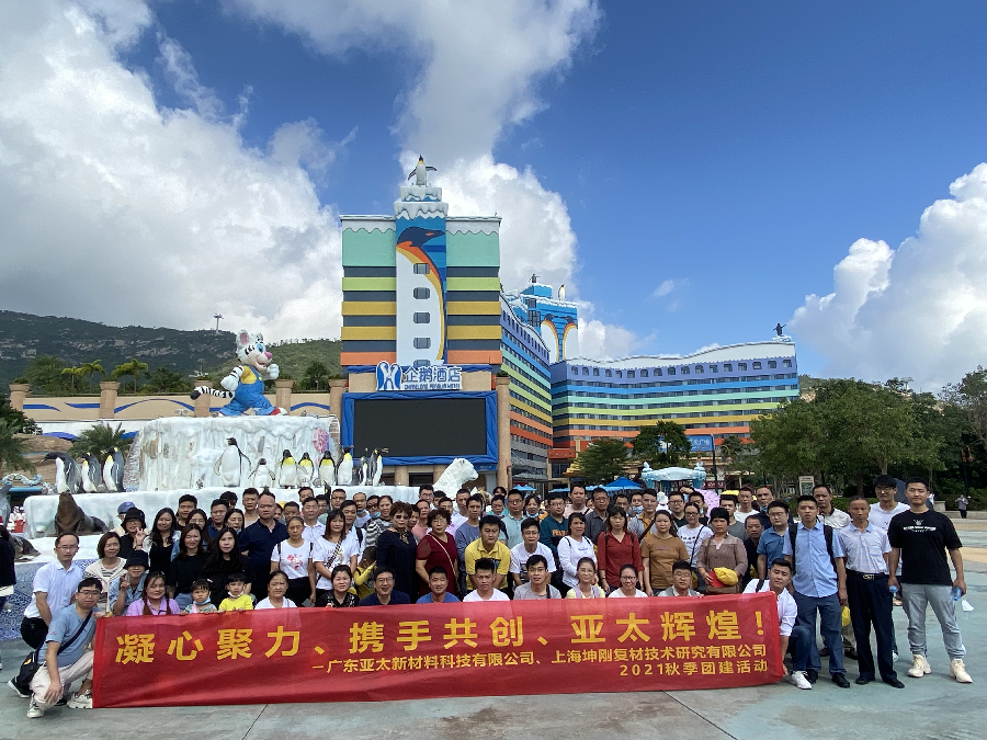 為了促進公司職工之間的相互溝通與交流,增進同事之間的情誼,營造團結(jié)、激情、責任、快樂的工作氛圍,2021年11月5-6日,廣東亞太新材料科技有限公司與所屬的上海坤剛復材技術(shù)研究有限公司、上海坤剛復材技術(shù)研究有限公司珠海分公司的全體職工集聚在珠海市,在充分做好疫情防控措施的前提下,特別安排了“疑心聚力 攜手共進 亞太輝煌”的團建聯(lián)誼活動,先后參觀了圓明新圓、情侶路、港珠澳大橋、海洋王國等景點。讓“三地”公司同事有機會相聚一起,彼此多一些交流和溝通。通過活動宣導和正確引領(lǐng),對公司發(fā)展前景有一個更深層次的了解,對未來公司發(fā)展充滿希望和信心,為實現(xiàn)亞太五年規(guī)劃美好藍圖和亞太利益共同體的目標而努力奮斗。圖:團隊觀港澳珠大橋合影亞太是一家創(chuàng)新發(fā)展充滿活力的企業(yè),近兩年來隨著公司跨領(lǐng)域、跨行業(yè)轉(zhuǎn)型發(fā)展步伐加快,先后成了3家子公司,專業(yè)為復合材料成型技術(shù)、結(jié)構(gòu)設(shè)計、強度分析和測試提供技術(shù)服務(wù),先后為航空領(lǐng)域、船舶工程、特殊裝備、輕量化汽車零部件提供可靠的技術(shù)支撐。公司組建了“三心兩站一分部”一流的研發(fā)平臺,先后開發(fā)了一系列復合材料的核心專利技術(shù),授權(quán)36項自主的國家知識產(chǎn)權(quán)(發(fā)明專利10項)和6項工藝、智能控制系統(tǒng)軟件著作權(quán),正在布局(申請)發(fā)明專利32項,進入實審的20項。制定了一流的標準,主導制定《汽車用碳纖維復合材料覆蓋部件通用技術(shù)要求》GB/T39491-2020國家標準,于2021年10月1日正式實施。